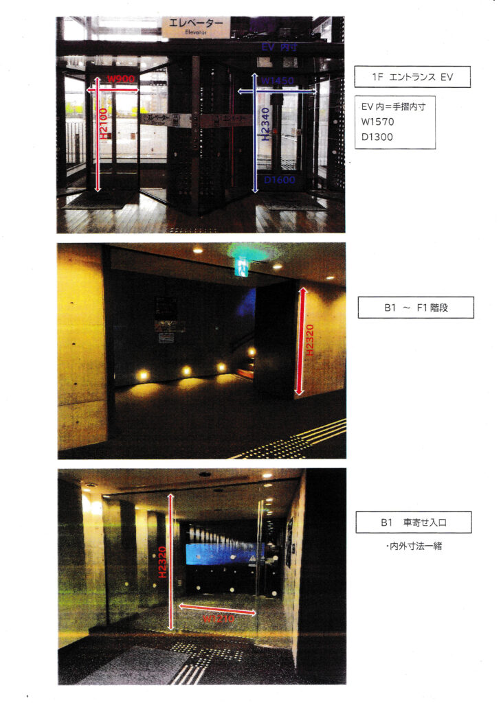 浪切ホールの地下駐車場から搬入をお願いします。地下から多目的ホールのフロアまではエレベーターがありますので、台車などを使っての搬入が可能です。↓下におおまかなサイズをご案内します。横幅は90cmまでです。ご注意ください。駐車場は終日無料です。